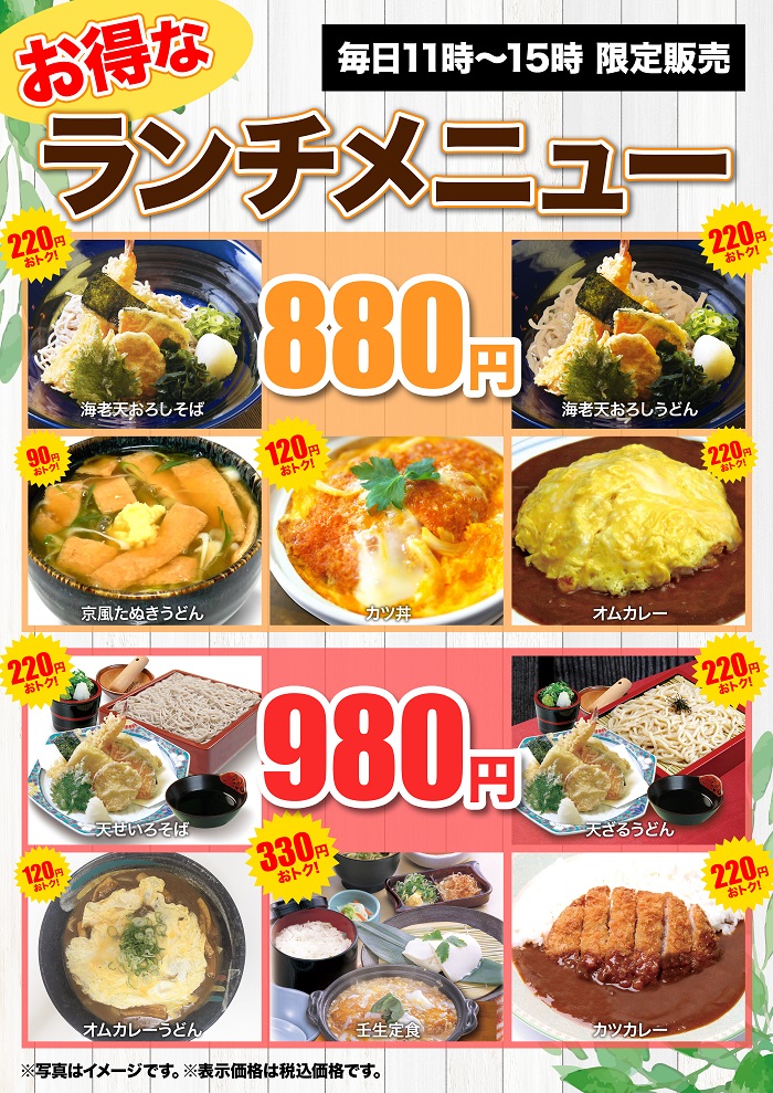 | 小人(小学生以下) | 370円 | 420円 |